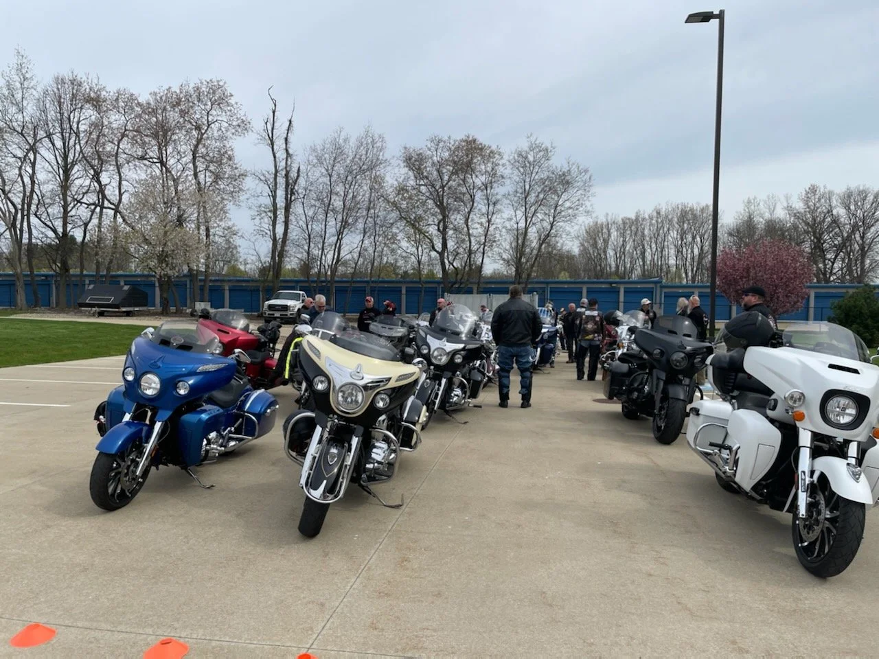 As always, we started with breakfast catered by Buehler’s and provide by Bair’s Indian Motorcycle, with plenty of fellowship as our members and guests mingled and caught up with each other. It was especially good to see our snowbird friends who have returned home to ride with us. We also welcomed several members of North Coast IMRG 1946, who joined us for breakfast and the ride. One of our Midwest Regional Volunteers, Bryan Moore, is an officer in Chapter 1946 and introduced the other officers and riders from that chapter who came down with him. Here’s hoping our Kickoff Breakfast is just the beginning of friendship and fellowship between our chapters for a long time to come.