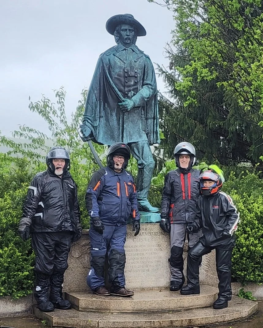 The rain forced us to adjust the ride and simply ride to lunch and then Custer ‘s monument in New Rumley. We had few folks willing to test their rain gear, but a majority opted to head home. Ride your ride is our motto.